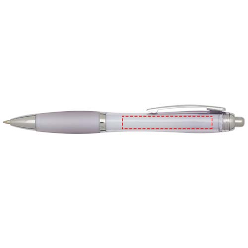 Der Nash Kugelschreiber aus recyceltem Kunststoff mit Klickmechanismus zeichnet sich durch sein stilvolles, geschwungenes Design aus. Er verfügt über einen transparenten, farbigen Schaft mit silbernen Akzenten sowie einen farblich passenden weichen Griff, der für ein angenehmes Schreibgefühl sorgt. Er besteht aus RCS-zertifiziertem recyceltem ABS Kunststoff und trägt dazu bei, den Verbrauch von Neuware zu reduzieren, ohne dabei an Strapazierfähigkeit einzubüßen. Auf der Rückseite befindet sich ein rABS-Logo, das auf den Recyclinganteil hinweist. Tintenfarbe: Schwarz. Spitzengröße: 1,0 mm. Schreiblänge: 1000 Meter.