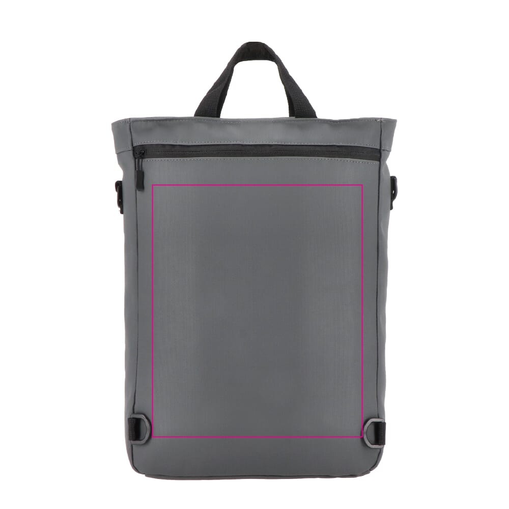 Wandelbarer PU-Laptop-Rucksack mit 210D-Futter für 15,6-Zoll-Laptops. Kann als Rucksack oder Umhängetasche getragen werden. Mit Fronttasche mit Reißverschluss, gepolstertem Laptopfach und Innenorganizer.