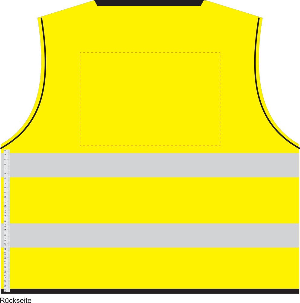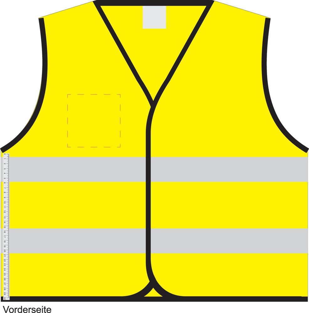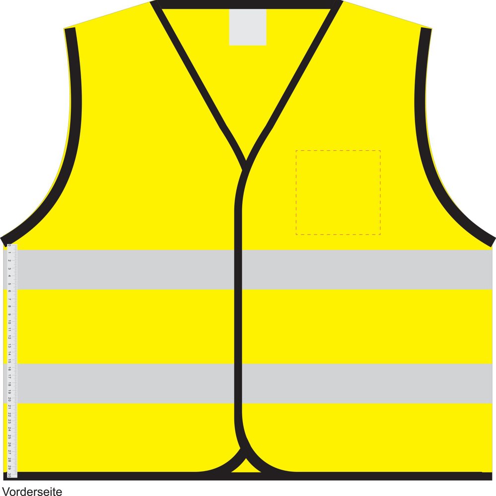 Warnweste mit stark reflektierenden Reflektionsstreifen zum optimalen Schutz bei Dunkelheit. Einheitsgröße XXL. Standardmäßig im Polybeutel erhältlich. Entspricht den Anforderungen der EU-VO 2016/425, Klasse II und der Norm EN ISO 20471:2013+A1:2016. Im Siebdruck nur in schwarz, silber oder silber reflektierend veredelbar. Aus 100 % Polyester.